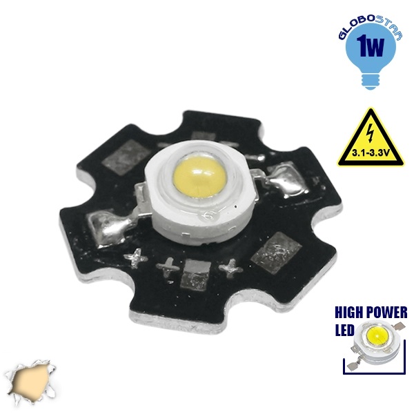 Υψηλής Ισχύος Star LED High Power 1W 3.2V Θερμό Λευκό 3000k GloboStar 47040
