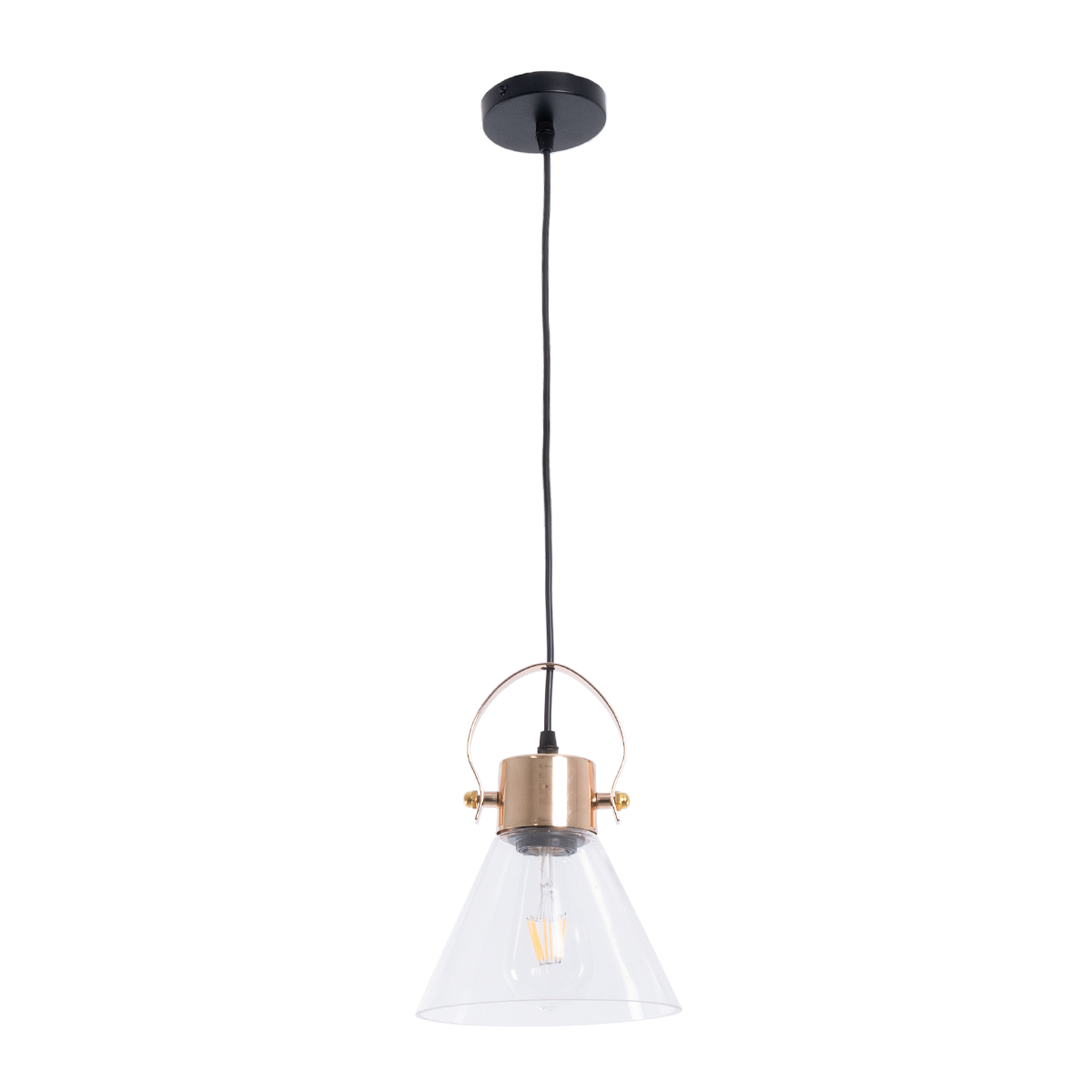 GLOBOSTAR® JAVER 00935 Vintage Κρεμαστό Φωτιστικό Οροφής με Ντουί 1 x E27 AC 220-240V IP20 – Διάφανο & Χάλκινο – Μ19 x Π19 x Υ25cm