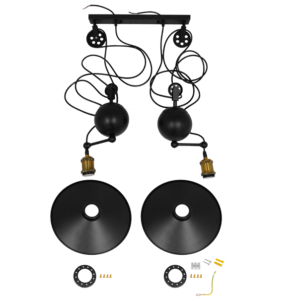 GloboStar® CARILO 01550 Vintage Industrial Κρεμαστό Φωτιστικό Οροφής Δίφωτο Μαύρο Μεταλλικό με Ρυθμιζόμενη Ανάρτηση Μ72 x Π26 x Υ120cm