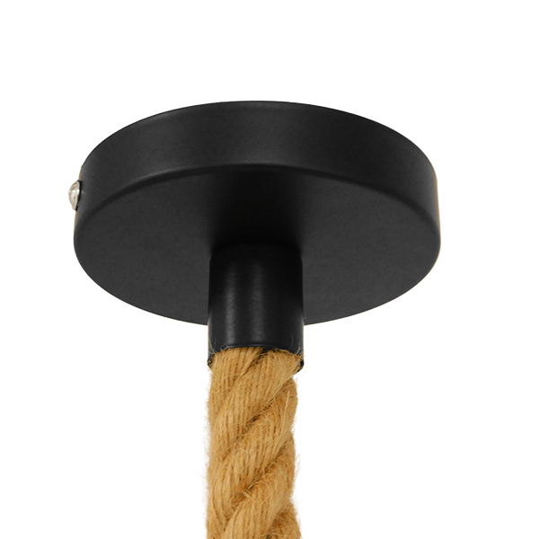 GloboStar® CAMBER 01594 Vintage Industrial Κρεμαστό Φωτιστικό Οροφής Μονόφωτο Μαύρο Μεταλλικό Πλέγμα με Μπεζ Σχοινί Φ11 x Υ25cm