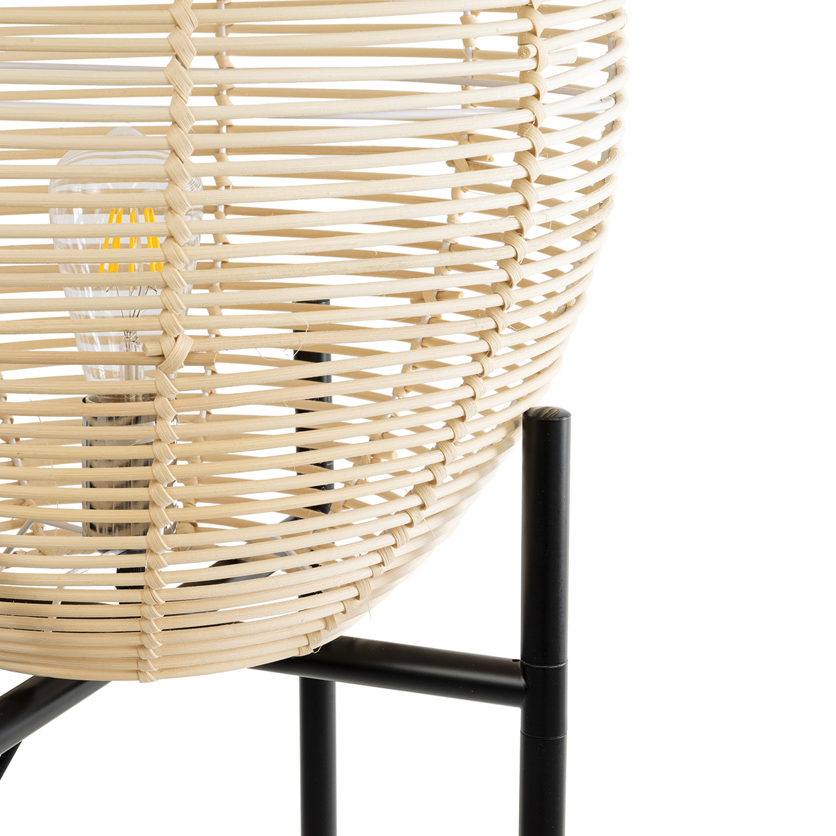 GloboStar® NERINA 02015 Boho Επιδαπέδιο Φωτιστικό Μονόφωτο 1 x E27 IP20 Μαύρο Μέταλλο με Μπεζ Ξύλο – Μ40 x Π40 x Υ115cm