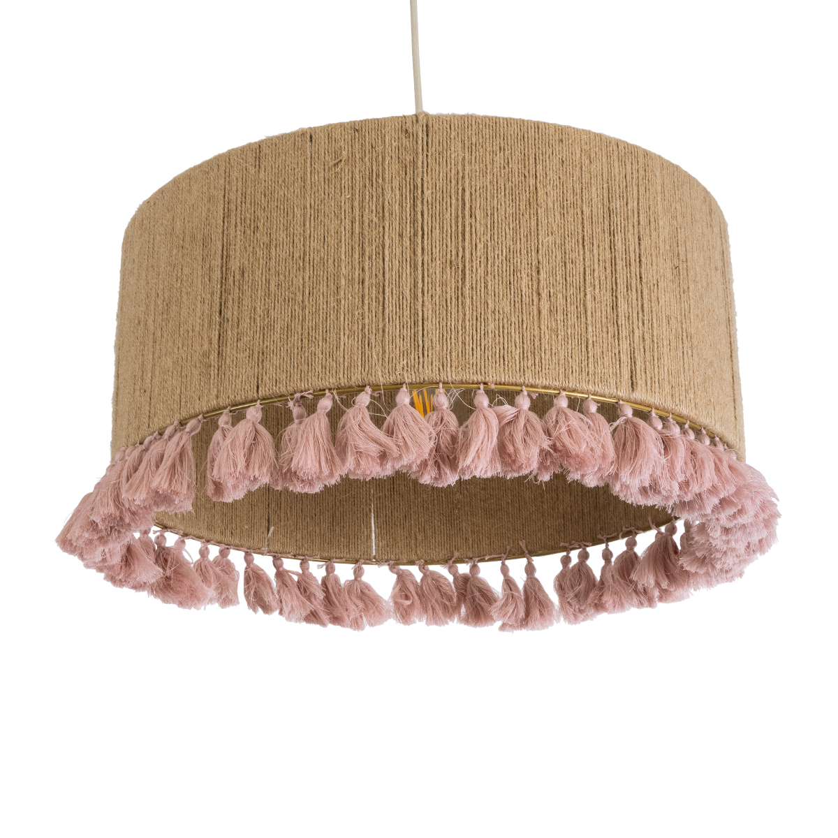GLOBOSTAR® PUERTORICO 02096 Boho Κρεμαστό Φωτιστικό Οροφής με Ντουί 1 x E27 AC 220-240V IP20 – Μπεζ & Ροζ – Μ50 x Π50 x Υ27cm