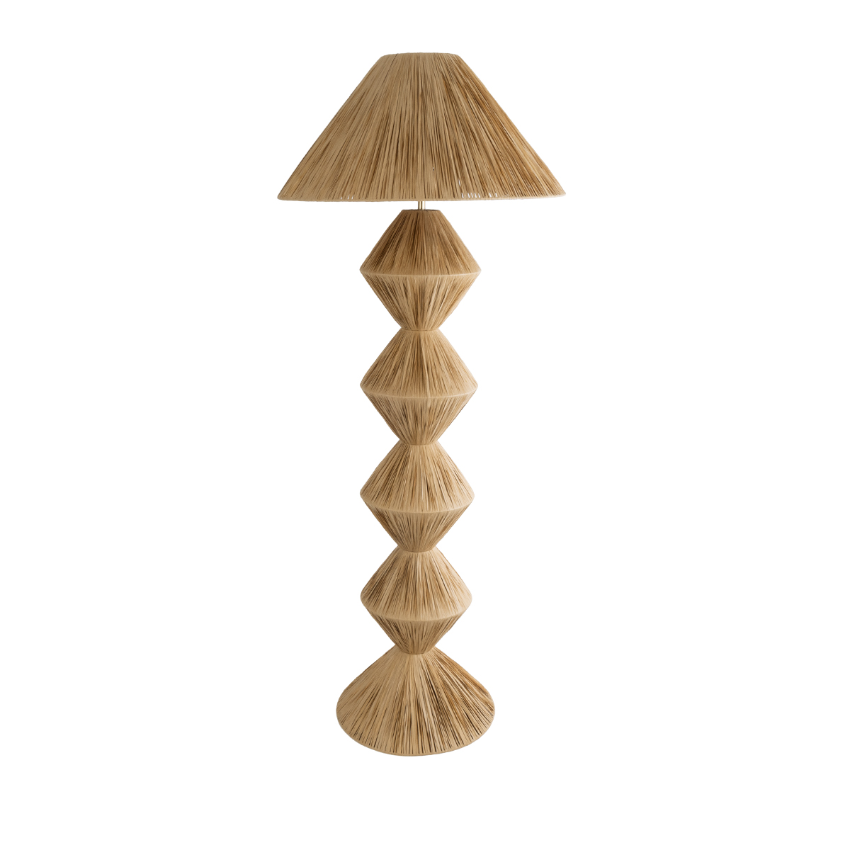 GloboStar® LUANA 02108 Boho Επιδαπέδιο Φωτιστικό Μονόφωτο 1 x E27 IP20 Μπεζ Raffia – Μ60 x Π60 x Υ150cm