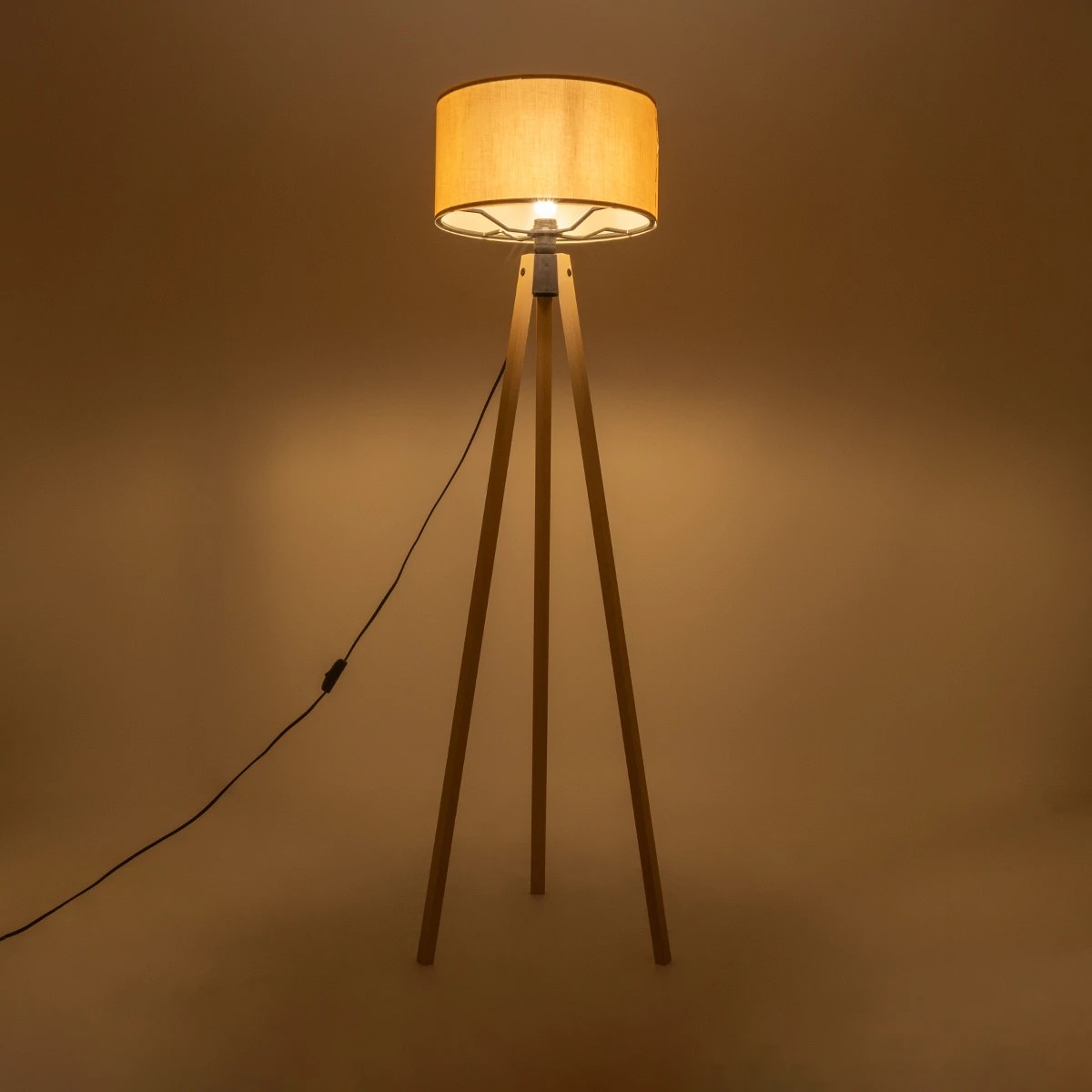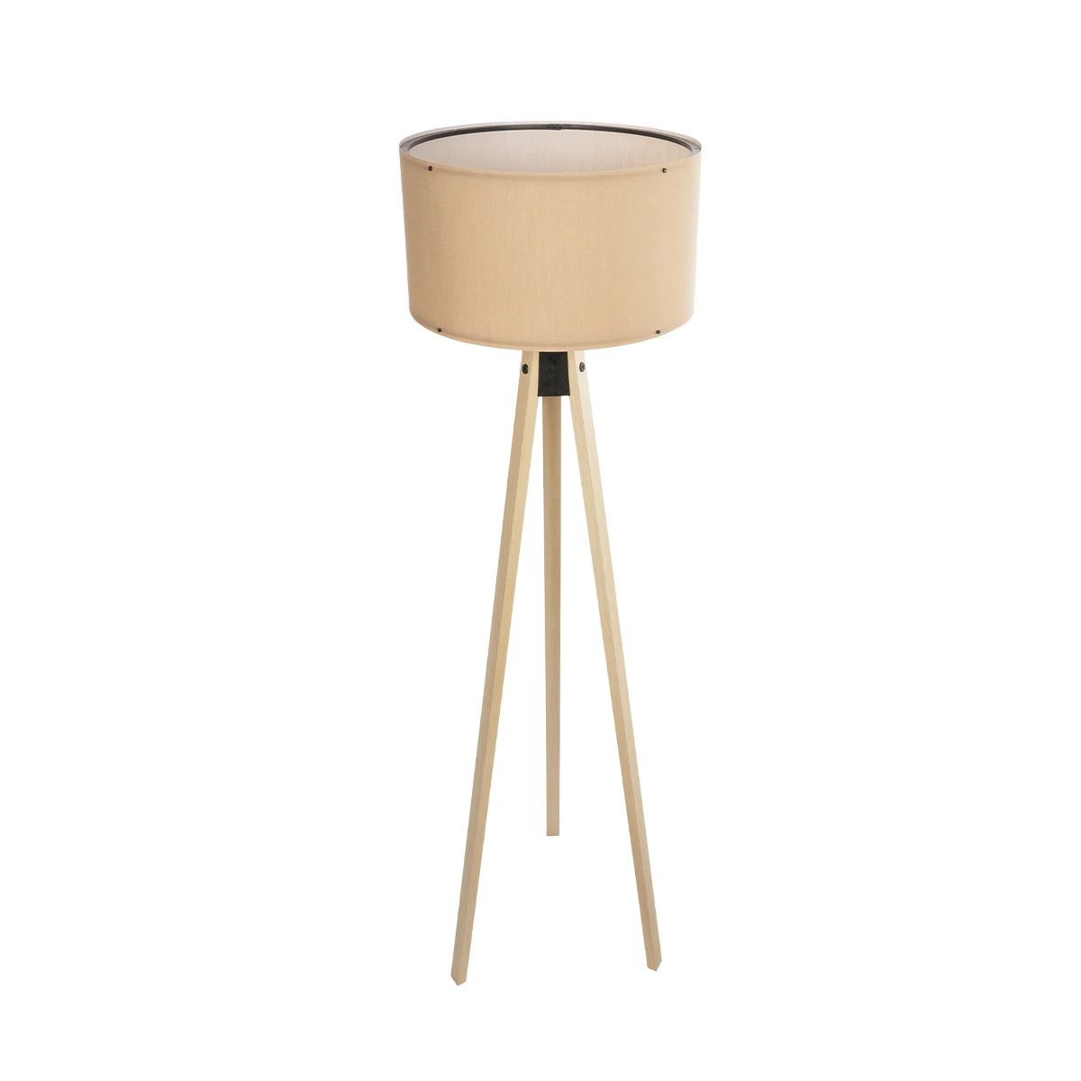 GloboStar® SAGA 204-0043 Μοντέρνο Eπιδαπέδιο Φωτιστικό Μονόφωτο 1 x E27 IP20 Μπεζ Ξύλο με Μπεζ Ύφασμα – Μ38 x Π38 x Υ140cm