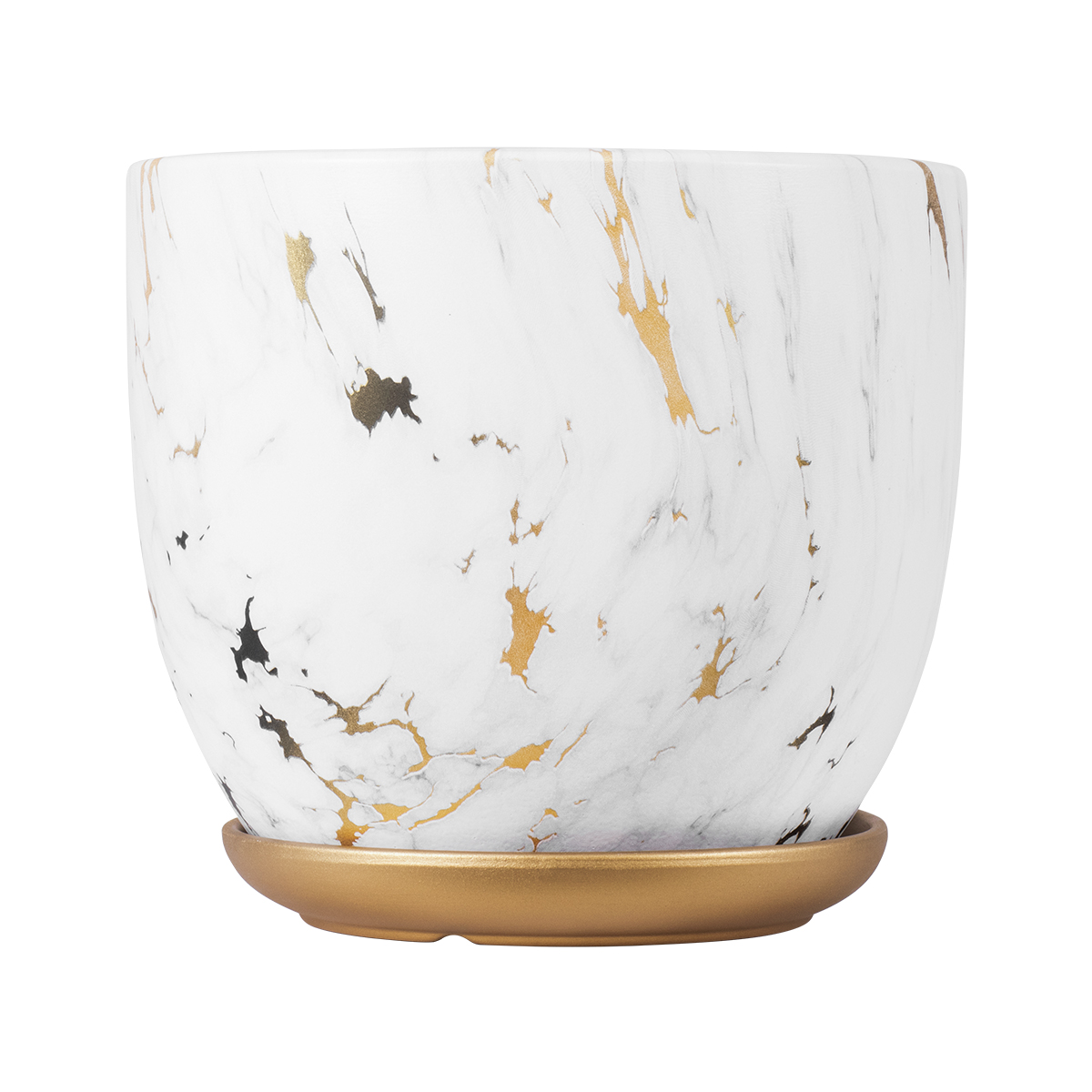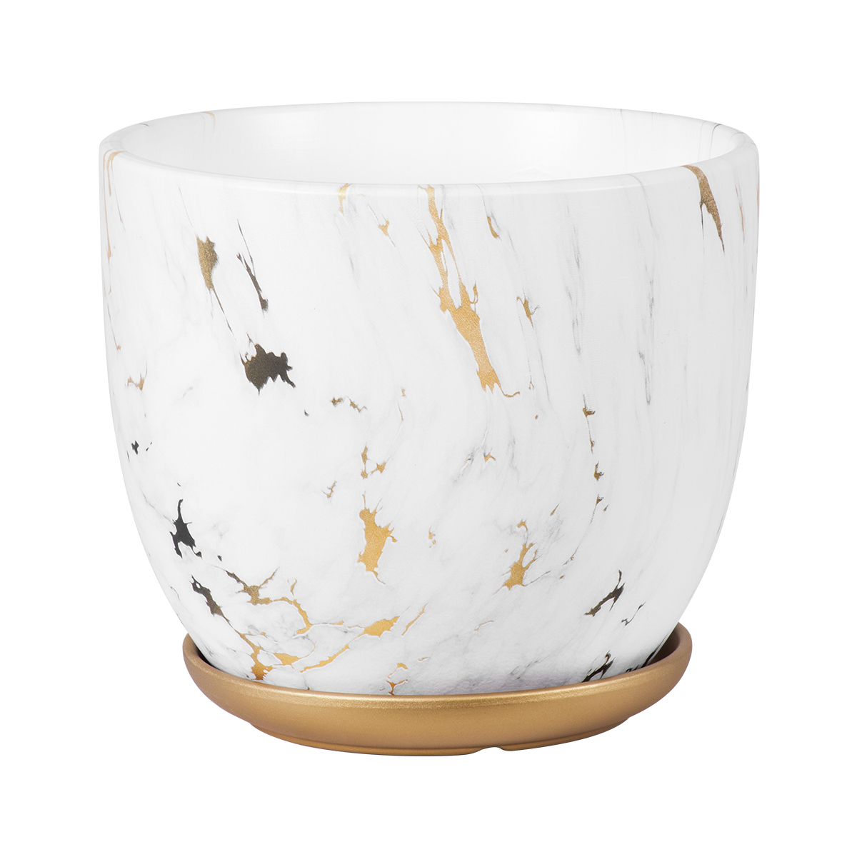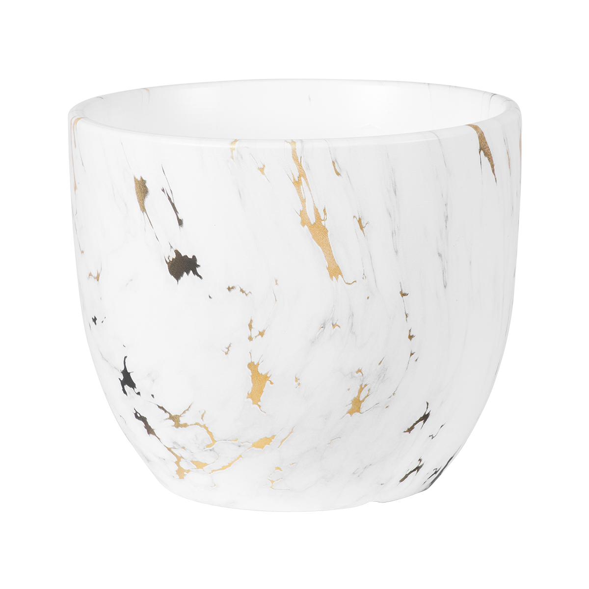 GloboStar® Artificial Garden RODOS 20461 Πήλινο Κεραμικό Κασπώ Γλάστρα – Flower Pot Λευκό με Χρυσό Φ21cm x Υ19cm
