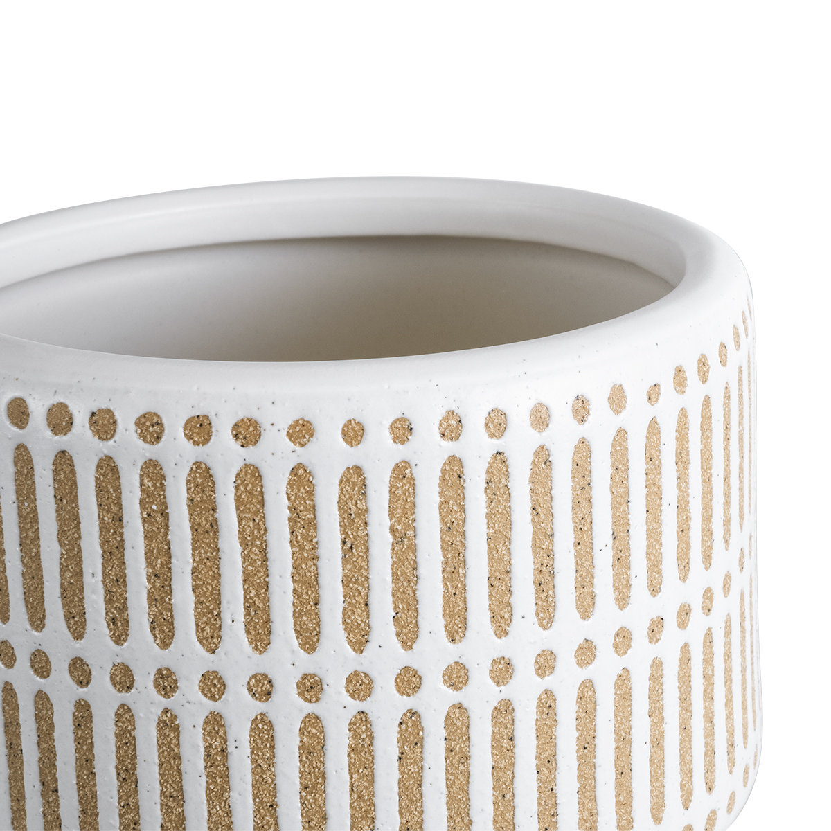GloboStar® Artificial Garden AMARETTO 20543 Διακοσμητικό Κεραμικό Κασπώ Γλάστρα – Flower Pot Μπεζ με Λευκό Φ11 x Υ11cm