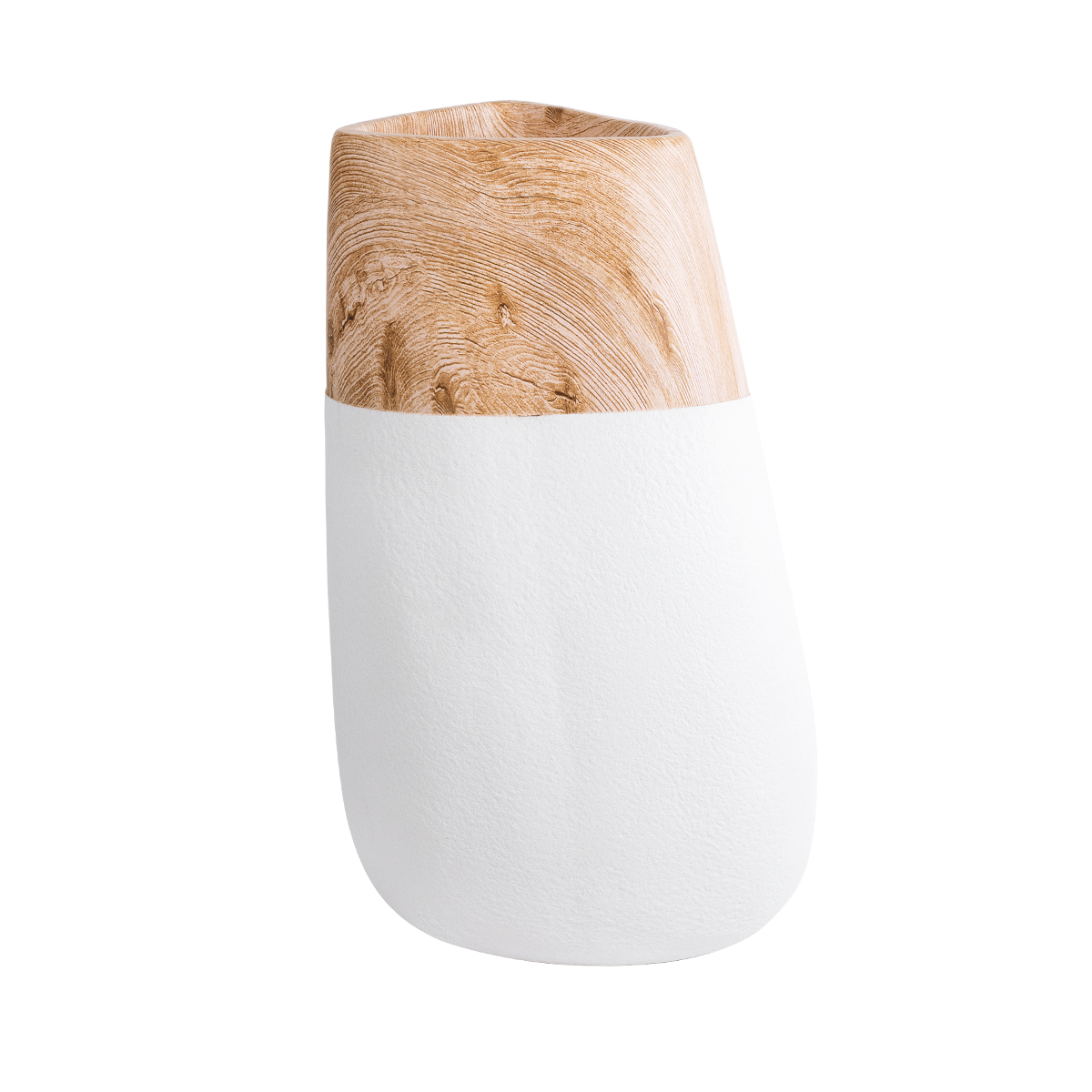 GloboStar® Artificial Garden PANDORA 20706 Επιδαπέδιο Πολυεστερικό Τσιμεντένιο Κασπώ Γλάστρα – Flower Pot Λευκό με Καφέ Μ45 x Π40 x Υ72cm