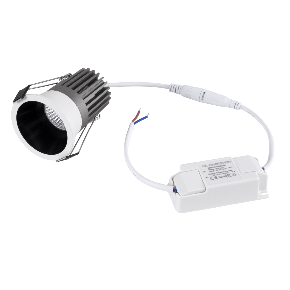 GloboStar® MICRO-B 60241 Χωνευτό LED Spot Downlight TrimLess Φ6cm 7W 875lm 38° AC 220-240V IP20 Φ6 x Υ7.8cm – Στρόγγυλο – Λευκό με Μαύρο Κάτοπτρο – Θερμό Λευκό 2700K – Bridgelux COB – 5 Years Warranty