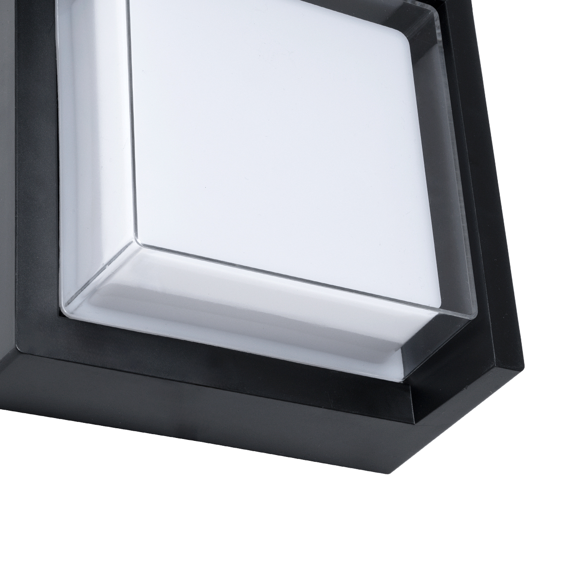 GLOBOSTAR® APEX 60770 Φωτιστικό Τοίχου – Απλίκα Εσωτερικού/Εξωτερικού Χώρου LED 10W 1050lm 120° AC175-265V Αδιάβροχο IP65 – Πλαστικό Σώμα – Φυσικό λευκό 4500K – Μ17 x Π17 x Υ9cm – Μαύρο – Bridgelux Chip – 3 Χρόνια Εγγύηση