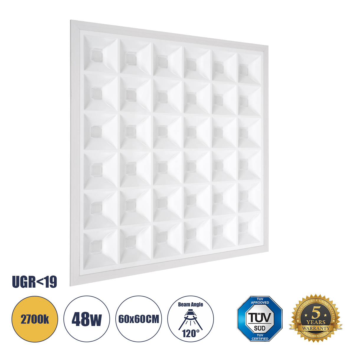 GloboStar® ZEUS 60970 Χωνευτό LED Panel 60x60cm 48W 6960lm 120° CRI≥86Ra UGR<19 Anti-Glare Shield Diffuser AC 220-240V IP44 Μ60 x Π60 x Υ3.3cm - Θερμό Λευκό 2700K - Bridgelux High Lumen Chips - TÜV Certified Driver - 5 Years Warranty