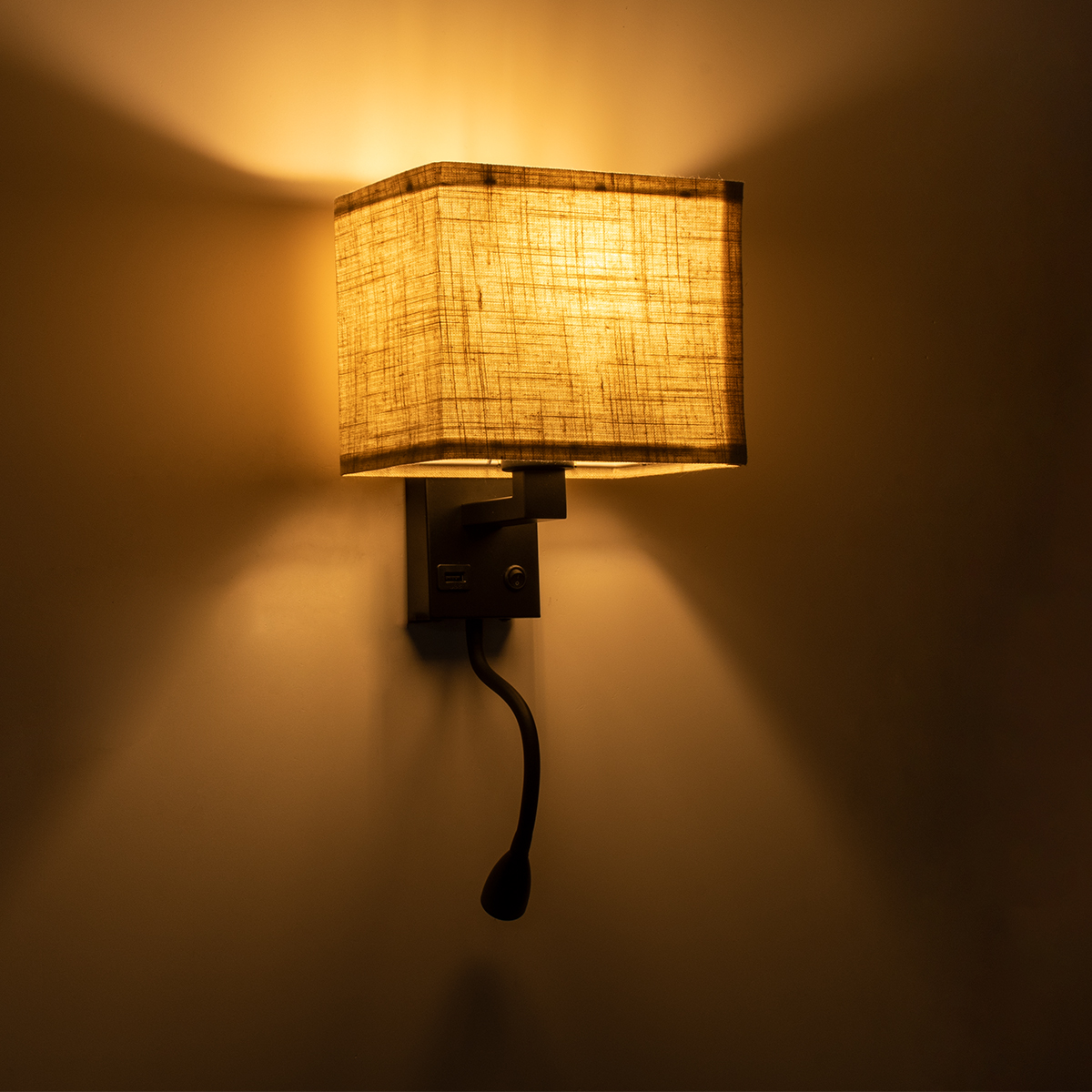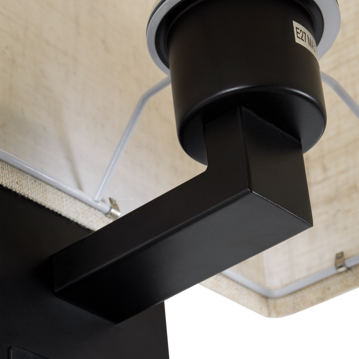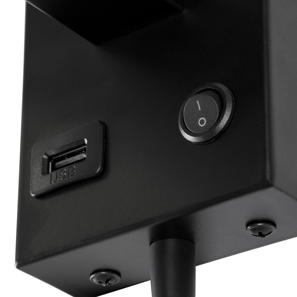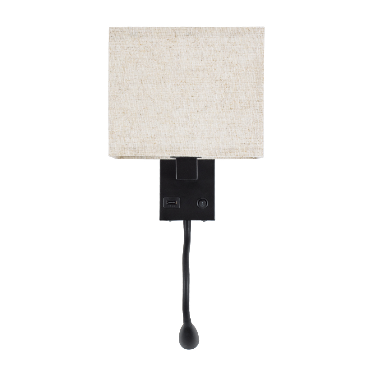 GloboStar® ROULETTE-S 61382 Μοντέρνο Φωτιστικό Τοίχου – Απλίκα Ξενοδοχείου Bed Side LED 3W 360lm & 1 x E27 36° & 360° AC 220-240V – Reading Up/Down Light – Φορτιστής USB 3A – Μ17 x Π20 x Υ37cm – Φυσικό Λευκό 4500K – Μαύρο με Μπεζ Καπέλο – Σετ 2 Τεμαχίων