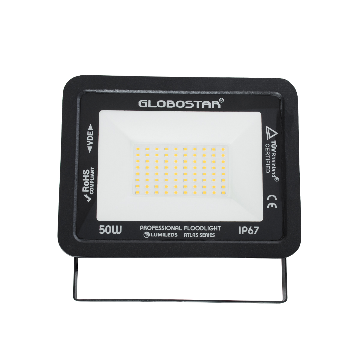 GloboStar® ATLAS 61424 Επαγγελματικός Προβολέας LED 50W 5750lm 120° AC 220-240V – Αδιάβροχος IP67 – Μ21 x Π3.5 x Υ16cm – Μαύρο – Θερμό Λευκό 2700K – LUMILEDS Chips – TÜV Rheinland Certified – 5 Years Warranty