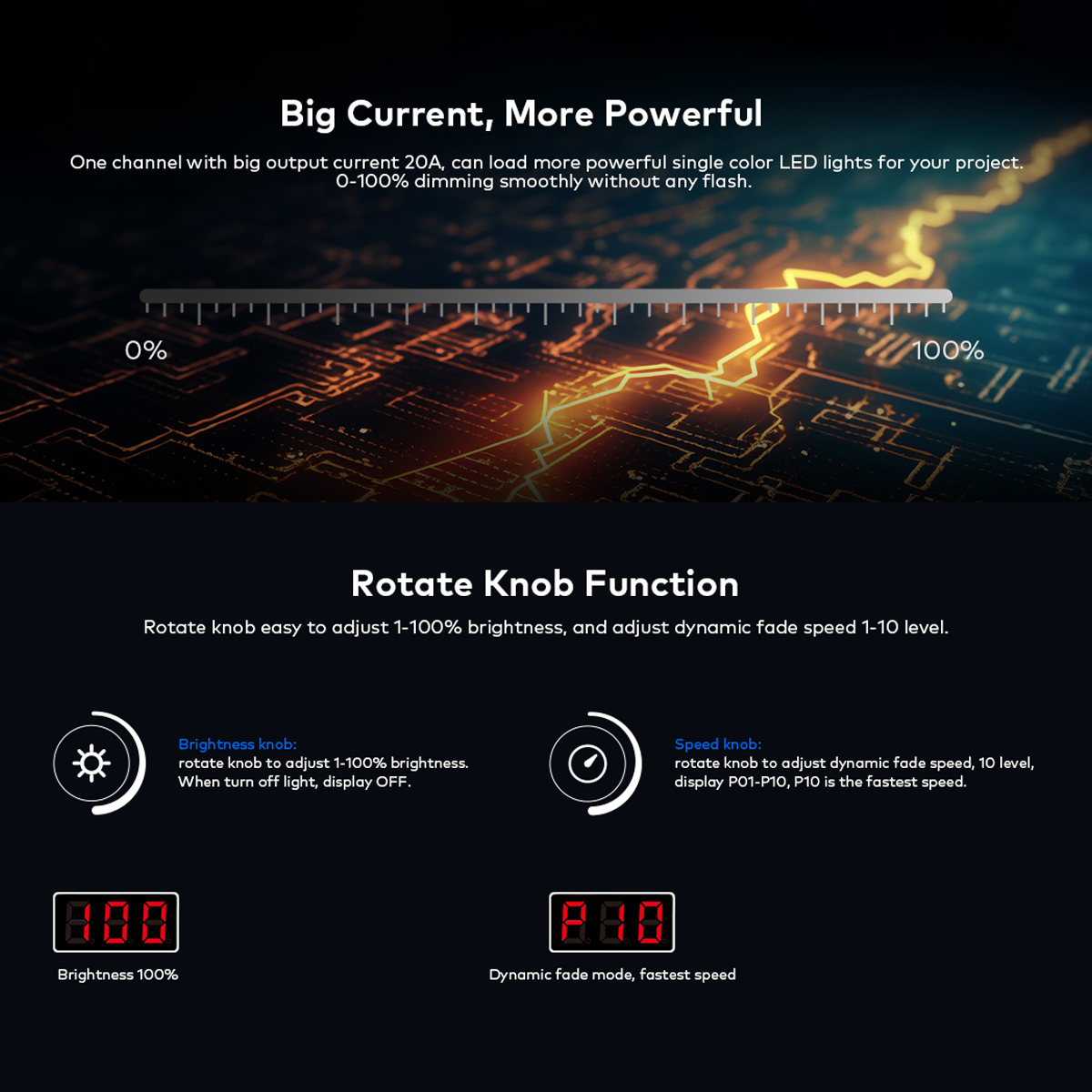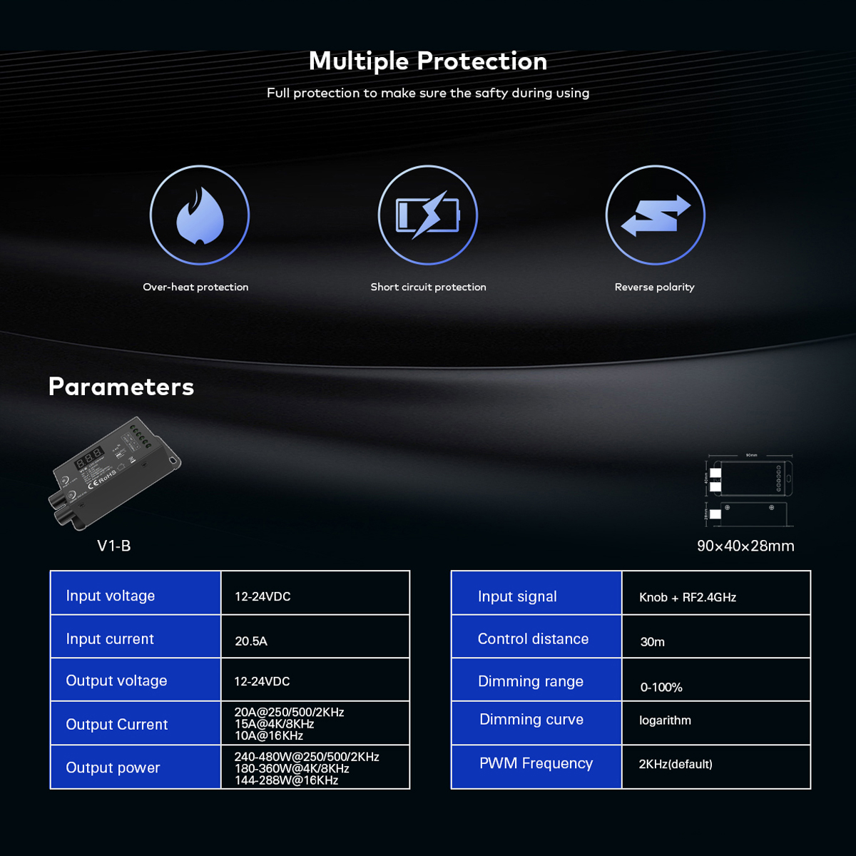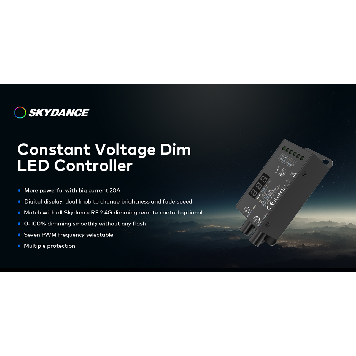 GloboStar® 73116 V1-B SKYDANCE DC RF 2.4Ghz Dimmer Constant Voltage Controller 1 Κανάλι DC 12-24V 1 x 20.5A 480W – Max 20.5A 480W – IP20 Μ9 x Π4 x Υ2.8cm – 5 Χρόνια Εγγύηση