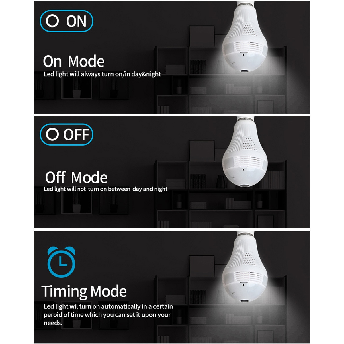 GloboStar® 76073 WIFI 2.4G IP CAMERA 2.0MP 1080P – Έξυπνη Κρυφή IP Κάμερα WiFi 1080P Fish Eye 360° 3W LED σε Σχήμα Λάμπας με Ντουί και Βάση E27 Smart Home