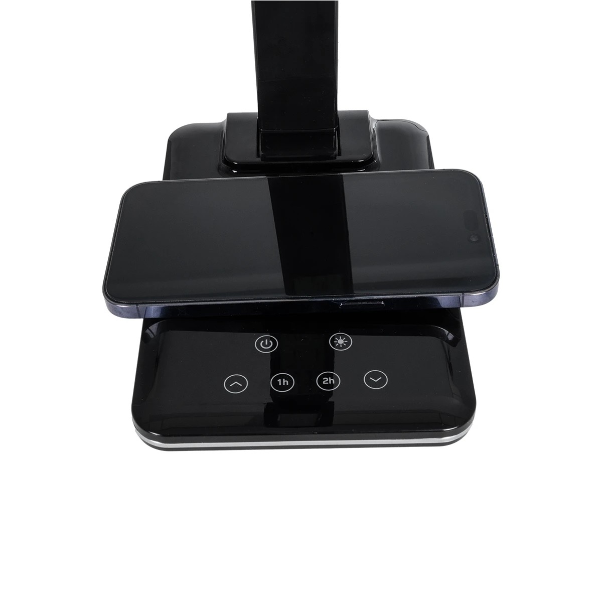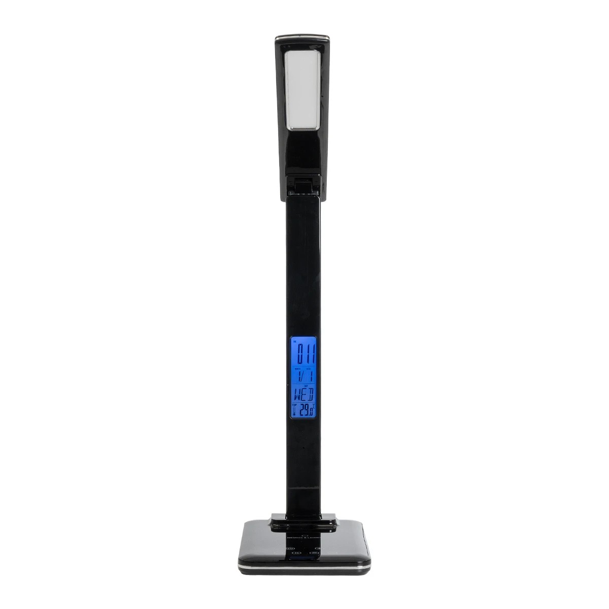 GLOBOSTAR® ZENTIME 76564 Μοντέρνο Επιτραπέζιο Φωτιστικό Γραφείου με Ασύρματη Φόρτιση 10W 2A & Ψηφιακό Ρολόι LED 3.5W 350lm 120° DC 5V με USB-C IP20 Ρυθμιζόμενο Λευκό CCT με Αφή 2700K/4500K/6000K Dimmable – Sanan SMD Chip – Μαύρο – Μ18 x Π12 x Υ40cm – 2 Χρόνια Εγγύηση
