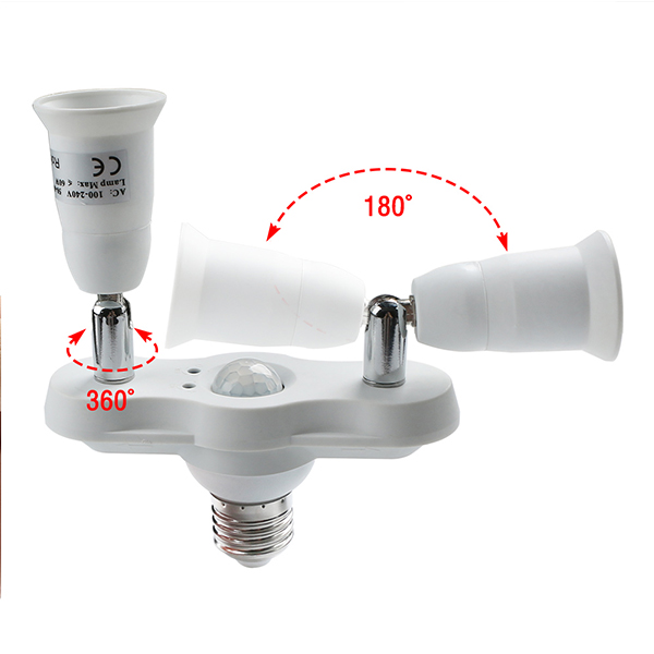 Αντάπτορας από 1xE27 σε 2xE27 με Κινούμενες Σπαστές Βάσεις και Ενσωματωμένο Αισθητήρα Κίνησης GloboStar 77865