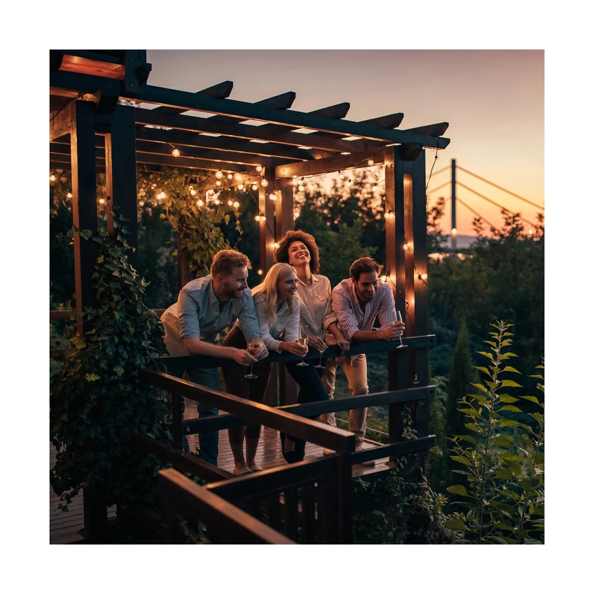GLOBOSTAR® TWILIGHT 79667 Μοντέρνο Φωτιστικό Κήπου Γιρλάντα 7.7m με 15 Λάμπες & IR Ασύρματο Χειριστήριο LED 9W 810lm 360° DC 3.7V με Ενσωματωμένο Φωτοβολταϊκό Panel 5.5V 1.5W & Επαναφορτιζόμενη Μπαταρία Li-ion 3.6V 1×18650 2200mAh Αδιάβροχο IP65 Θερμό Λευκό 2700Κ Dimmable – Sanan SMD Chip – Μαύρο & Διάφανο – Μ770 x Π4 x Υ7cm – 2 Χρόνια Εγγύηση