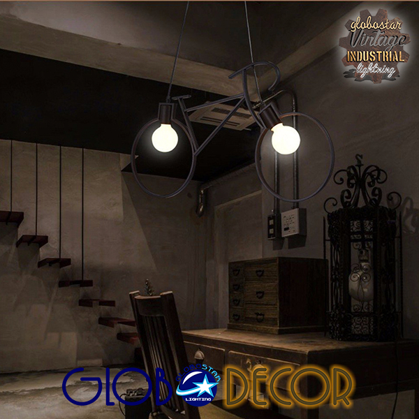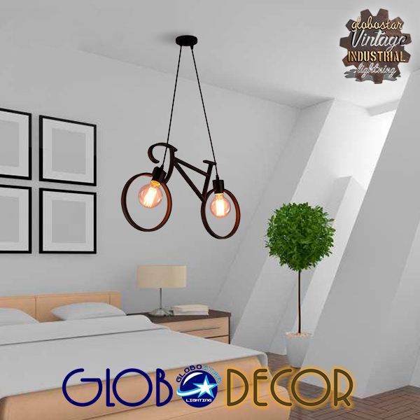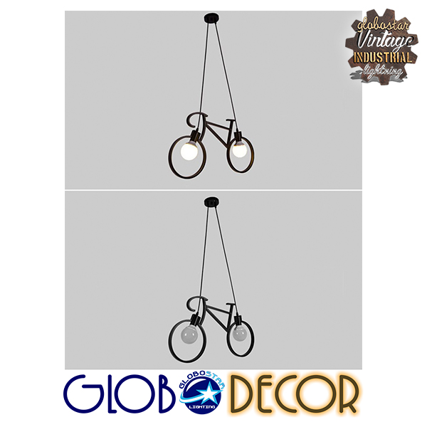GloboStar® BIKE BLACK 01213 Vintage Κρεμαστό Φωτιστικό Οροφής Δίφωτο Μαύρο Μεταλλικό Μ67 x Π1.5 x Υ41cm