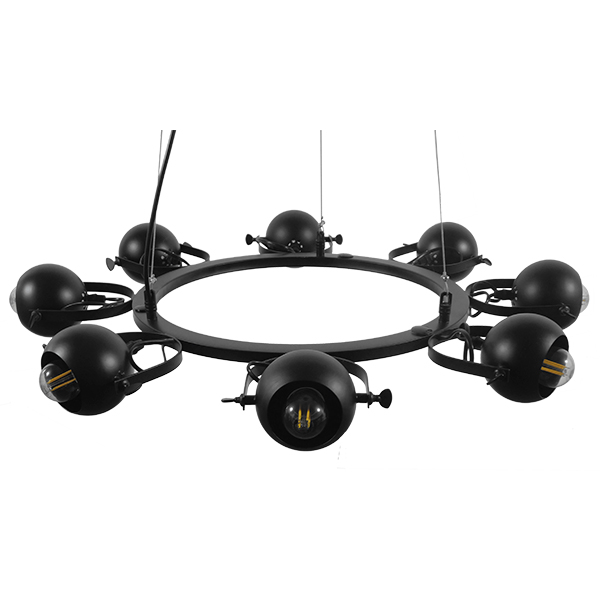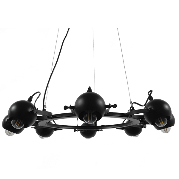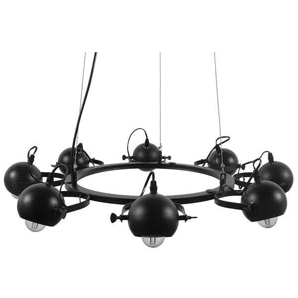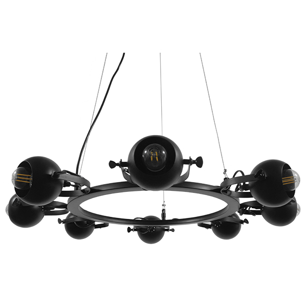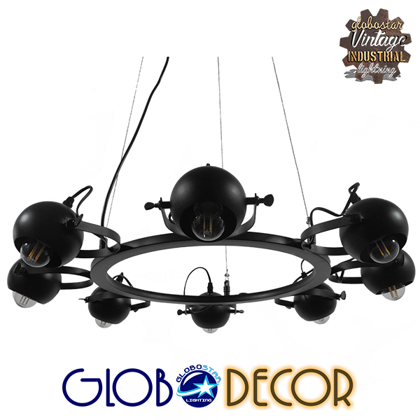 GloboStar® LINNYA 01219 Μοντέρνο Industrial Κρεμαστό Φωτιστικό Οροφής Πολύφωτο Μαύρο Μεταλλικό Πολυέλαιος με Κινούμενα Σποτ Φ66 x Y10cm