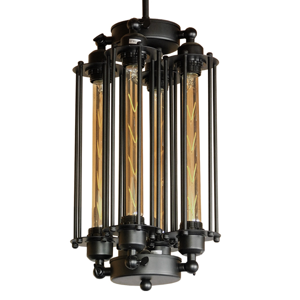 GloboStar® TUBING 01013 Vintage Industrial Κρεμαστό Φωτιστικό Οροφής Πολύφωτο Μαύρο Μεταλλικό Πλέγμα Φ27 x Y47cm