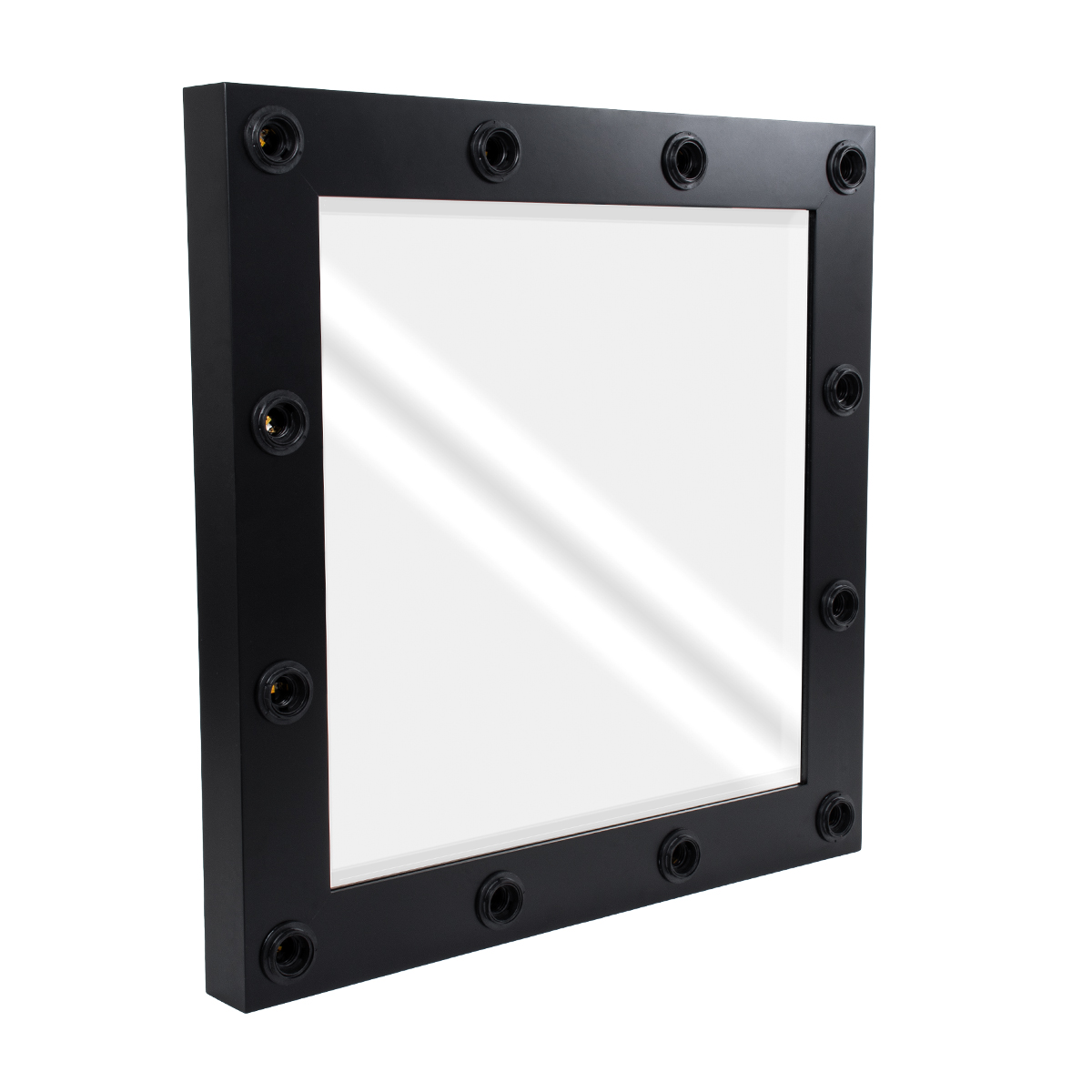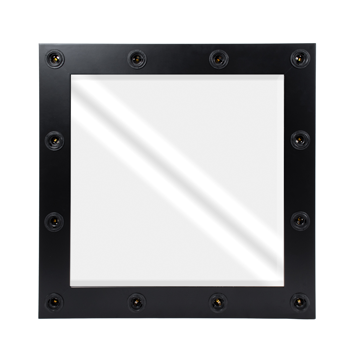 GloboStar® MAKEUP MIRROR-80×80-5 Μοντέρνος Καθρέπτης Μακιγιάζ με Πλαίσιο Φυσικού Ξύλου με Διακόπτη On/Off 12 x E27 AC220-240V – Μ80 x Π7 x Υ80cm – Μαύρος Έβενος